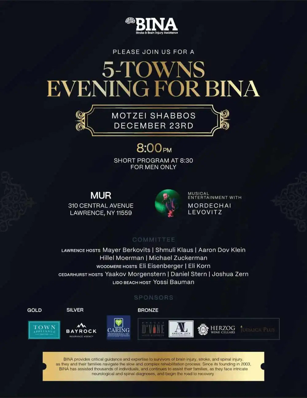 And a special thank you to our evening sponsors: Town Appliance, Bayrock Insurance Agency, Caring Professionals, KTS Pooled Trust, Spruce DVine, Andrew Lock Menswear, Herzog Wine, and Judaica Plus.
